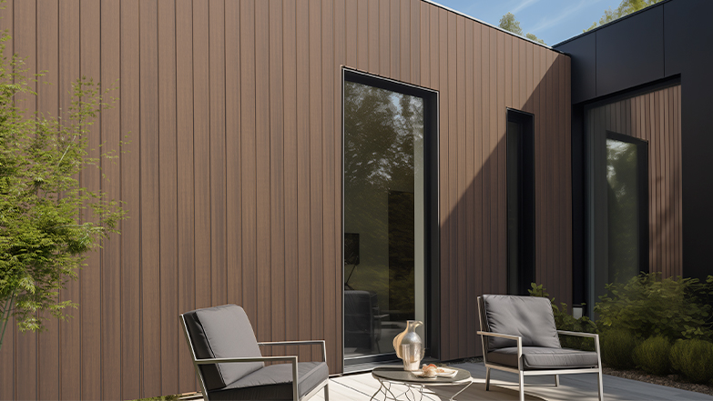Облицовъчните плочи WEO® Essential се сглобяват с помощта на система на език и жлеб . Леки и лесни за боравене благодарение на рационализирания си профил, те се завинтват върху дървени или алуминиеви скара, разположени на всеки 600 мм . Припокриването между 2-те дъски прикрива главата на винта за идеално дискретно закрепване. Предлагат се и винтове, тонирани, за да съответстват на цвета на дъските.